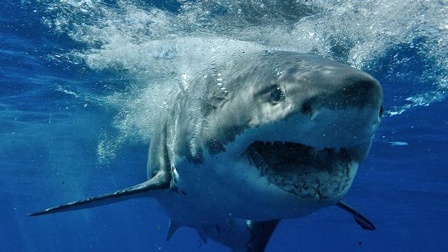一条大白鲨在澳大利亚维多利亚海岸浮出水面。如果你受到攻击并反击,请尽量避开危险的嘴,并攻击嘴后面靠近胸鳍的鳃