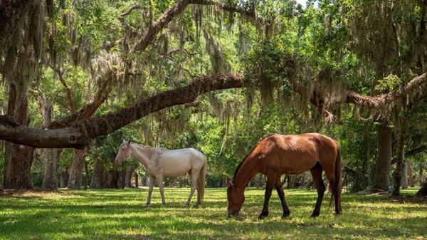 佐治亚州坎伯兰岛国家海岸:野马在这座拥有丰富自然和历史的障壁岛上漫步