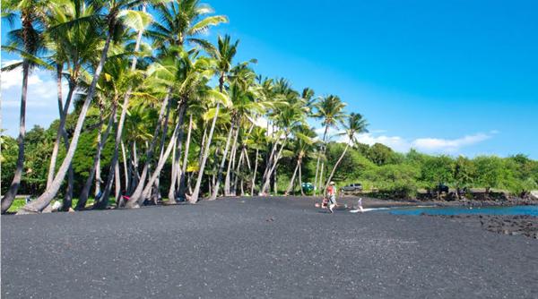 威夷卡乌区:普纳鲁乌是夏威夷最著名的黑沙滩之一。它位于夏威夷大岛南端的卡乌
