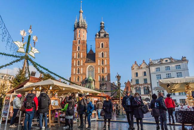 克拉科夫圣诞市场在圣玛丽大教堂附近的 Rynek Glowny 举办,每年都会吸引大批人群