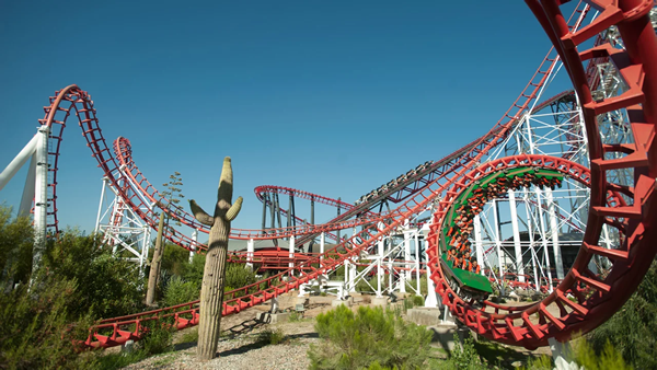 六旗魔术山拥有多达 20 个过山车,甚至被列入吉尼斯世界纪录——帮助公园证明其“世界惊险之都”的口号。但国内外的公园竞争对手在过山车数量上紧随其后。