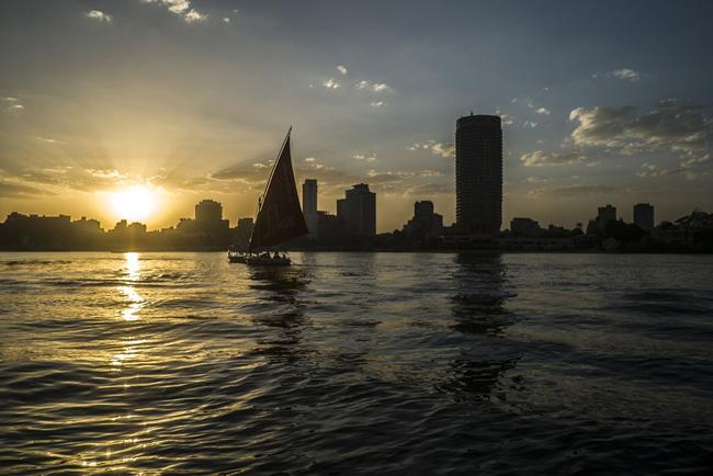 开罗,一艘名为“felucca”的传统埃及小船在尼罗河上航行