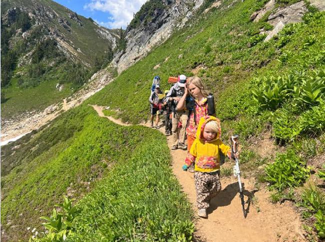 来自美国的徒步旅行者家庭由 44 岁的达娜厄 (Danae) 和奥伦·内特伯格 (Olen Netteburg) 以及他们的五个孩子(14 岁的莱尔 (Lyol)、12 岁的赞恩 (Zane)、10 岁的艾迪生 (Addison)、7 岁的杜松 (Juniper) 和两岁的派珀 (Piper))组成,他们正在前往完成徒步旅行的路上。北美三大徒步圣地——三冠王,覆盖近 8,000 英里(约 12,900 公里)。