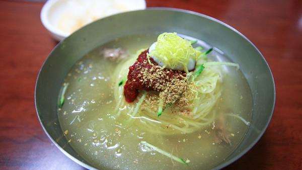 冷面是韩国夏季的主要亮点之一。在韩国,我们等待夏天,这样我们就可以每周开始吃冷面。冷荞麦面非常适合作为清淡午餐的选择,或者在韩式烧烤之后作为净化味觉的一种方式。Mul naengmyeon 或称“水”冷面,源自朝鲜平壤,由荞麦面条和浓郁的肉或泡菜汤组成,上面撒上萝卜丝、黄瓜和鸡蛋,并用醋和韩国芥末 (gyeoja) 调味。Bibim naengmyeon,或“混合”naengmyeon,通常包含相同的成分,但减去肉汤。相反,面条上覆盖着由辣椒酱制成的酱汁。