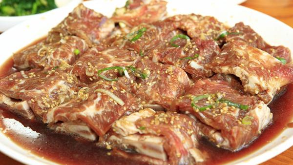 Galbi在韩语中的意思是“排骨”。Galbi,意思是“肋骨”,从技术上讲,可以来自猪肉,甚至鸡肉,但是当你只说“galbi”而不带修饰语时,你谈论的是用酱油、切碎的大蒜和糖的混合物腌制的厚肉片并在适当的火上烤。当然,牛肉排骨可以用来做汤(galbitang)和蒸排骨(galbijjim)。但这些菜肴虽然本身就很出色,但却被它们的烤头菜黯然失色。