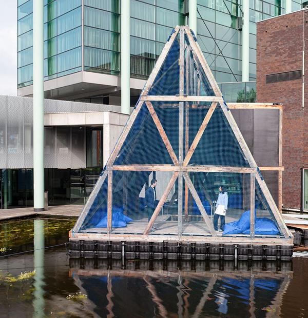 荷兰城市 Nieuwe Instituut 举办的新展览“鹿特丹水城” 展出了 NLé 的作品,NLé 是一家由 Kunlé Adeyemi 领导的建筑事务所,一直在世界各地研究和测试浮动建筑。一系列漂浮展馆坐落在博物馆的池塘中,由阿姆斯特丹和拉各斯广受好评的 Makoko 漂浮学校项目演变而来。