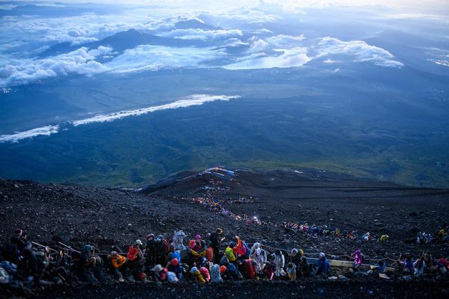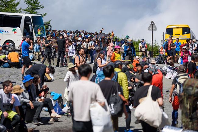 很少有人会将这些场景与日本最高峰联系起来:交通拥堵、山麓布满垃圾,以及穿着不合时宜的徒步旅行者——其中一些人试图穿着凉鞋攀登。