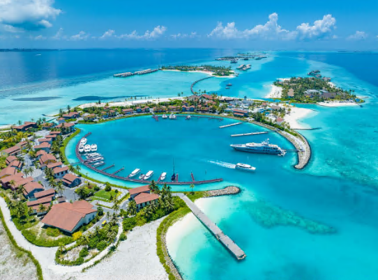 全国 160 多个度假村中的大部分都坐落在独立的岛屿上,其中许多都可以从首都马累的维拉纳国际机场乘坐水上飞机抵达。