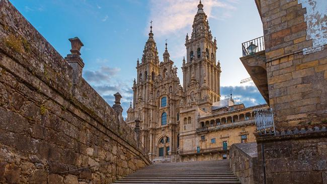 然后穿过边境,向西穿过西班牙大城市潘普洛纳、布尔戈斯和莱昂,前往传说中的目的地圣地亚哥德孔波斯特拉,那里是使徒圣詹姆斯的安息之地。