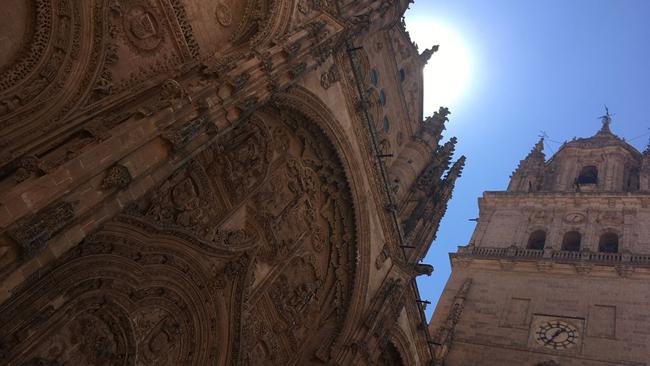 西班牙华丽的萨拉曼卡大教堂。托雷斯路是圣地亚哥卡米诺 (Camino de Santiago) 的众多路线之一,从萨拉曼卡 (Salamanca) 通往圣地亚哥德孔波斯特拉 (Santiago de Compostela)