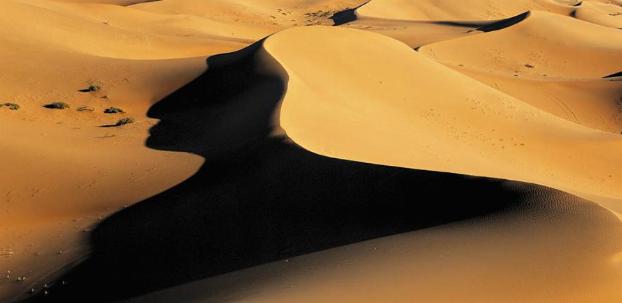 巴丹吉林并非一个浪漫之地,它的高大沙山、隐秘的湖泊、散落的居民点,都给人以一种特别的印象。这里仿佛是人世间边缘的一片郊区,冷清而孤寂,只适合那些喜欢孤独的人隐居,如修士和僧侣。每一位到访过巴丹吉林的人,都会在回忆中浮现出这样的画面:两匹骆驼在玫瑰色的晚照中缓缓走过沙梁,它们的影子在大地上拉得长长,显得格外孤单,而你,就是那个牵着骆驼,走在前面的旅人。