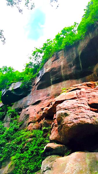 有“世界丹霞之冠”的佛光岩呈弧形,弧长1000余米、高300余米,中间有一条高200余米,宽40余米的柱状大瀑布,犹如赤云中飞身而下的小白龙,飘逸俊洒。丹霞地貌景观,丹岩绝壁、奇峰异石、崖廓岩穴比比皆是。