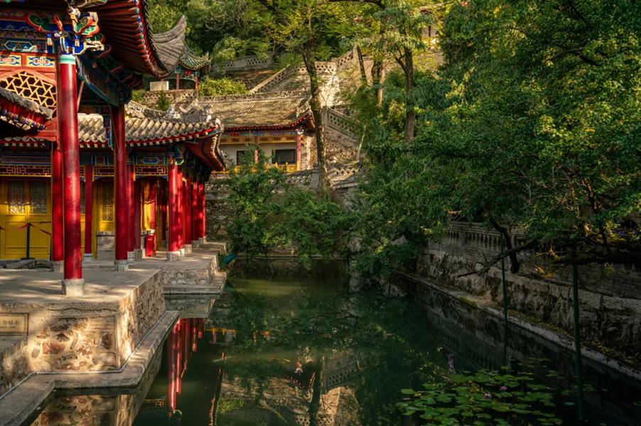 华清宫的主要建筑有九龙池、海棠春睡、御温泉等,其中最著名的景点是九龙池。九龙池是利用地下温泉水源形成的池塘,池水清澈见底,终年保持恒定的温度。池中雕塑着九条龙,形态各异,寓意着“九龙浴太子”的故事。