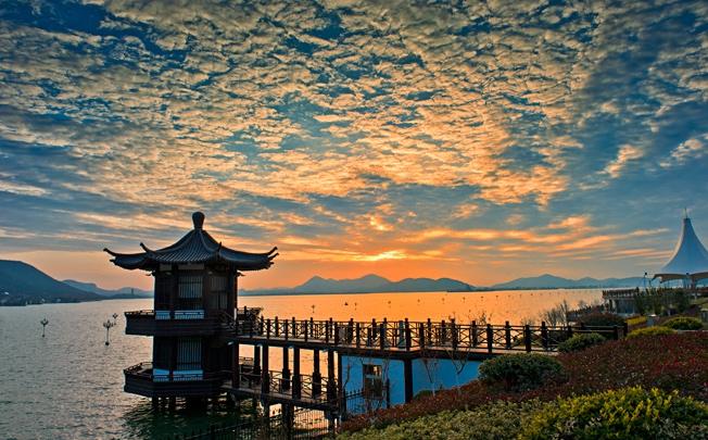 云龙湖,是徐州云龙湖风景区的主要景点。它原名“石狗湖”,最早形成于北宋。云龙湖东靠云龙山,西依韩山、天齐山南偎泉山、珠山。三面环山,一面临城。云龙湖原水面5.8平方公里,陆地5.6平方公里。以湖中路为界,东湖周长约8.1公里,西湖长约7公里,全湖周长约12公里。若包括上小南湖景区(总面积1.661平方公里,其中水域面积0.962平方公里),云龙湖水面面积已达到6.76平方公里,陆地面积6.3平方公里。云龙湖是徐州最优秀的自然景观,也是徐州的标志性景点之一。
