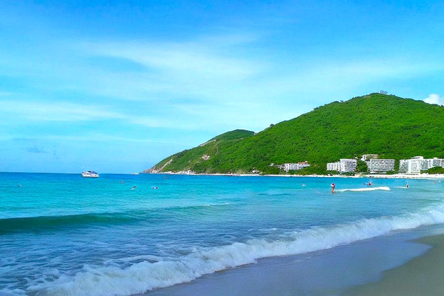 大东海旅游区,位于三亚市的榆林港和鹿回头之间,三面环山,一面大海,一排排翠绿椰林环抱沙滩,蓝天、碧海、青山、绿椰、白沙滩独特之美博得海内外游客的赞叹。大东海的海湾呈弓形,东南平行的两条小山脉就像两道堤墙筑入浩瀚的南海,铸成海湾和屏障。这里的水面是月牙形沙滩,南面是浩瀚无边的大海,冬季水温在18-22℃左右。海水澄净,水下能见度10米左右。