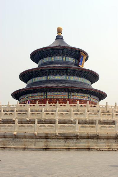 是天坛早的建筑物。光绪十五年(1889年)毁于雷火,我们现在看到的祈年殿是后来按照原样修复的。祈年殿可以说是天坛的标志性建筑,只要看到它就能想到天坛,想到北京。祈年殿的祭坛为坛殿结合的圆形建筑,根据古代“屋下祭帝”的说法建立。祈年殿下部为坛,坛为三层,高5.6米;殿为圆形,直径32.7米,高38米,三重檐攒尖顶,上覆鎏金宝顶蓝瓦,层层收进,整个建筑美观、宏伟、大气。祈年殿内有28根金丝楠木大柱,柱子环转排列,里圈的四根寓意春夏秋冬四季,中间一圈12根寓意12个月,外一圈12根寓意12时辰以及周天星宿。殿内梁枋施龙凤和玺彩画。除主要建筑祈年殿祭坛以外,坛边还有皇乾殿、东西配殿、祈年门、神厨、宰牲亭、长廊等,长廊南面的广场上有七星石,是嘉靖年间放置的镇石。