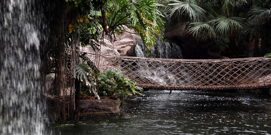 利用现代化温室技术在北方营造热带气候,展现原始雨林景观,在园中看到数千种热带和亚热带植物,数量达数十万株。其中包括蒲葵、大王椰子、华盛顿棕榈等棕榈科植物,而最为珍稀的植物有加拿利海枣、龙血树等。