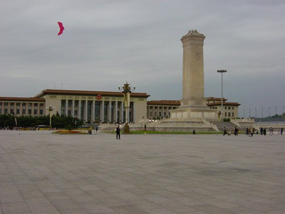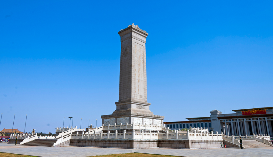 人民英雄纪念碑位于北京市中心天安门广场,天安门南约463米,正阳门北约440米,修建于1949年。它是中华人民共和国政府为纪念中国近现代史上的革命烈士而修建的纪念碑。整座纪念碑呈红色,形状为方形,总高度为37.94米,其中碑身高度为18.28米,基座高度为15.5米。