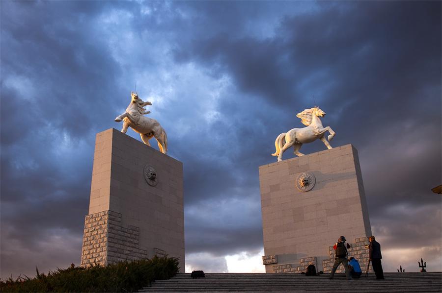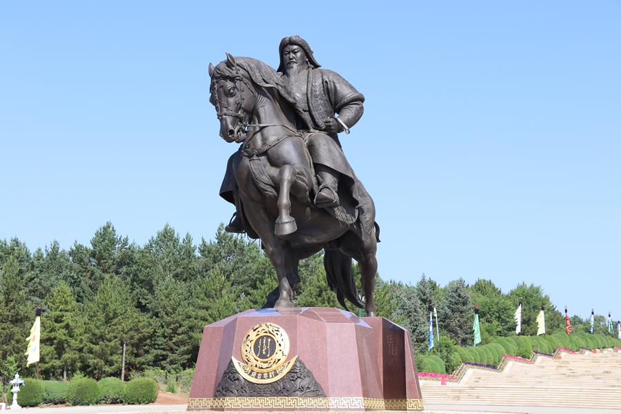 成吉思汗陵是一代天骄成吉思汗的衣冠冢所在地,是达尔扈特人700年以来一直守护的陵寝。在成吉思汗陵附近,还有一个成吉思汗陵旅游区(东联景区),这个景区是2004年某集团新建的人工文化主题公园,由气壮山河门、“铁马金帐”群雕、亚欧版图等景点组成。