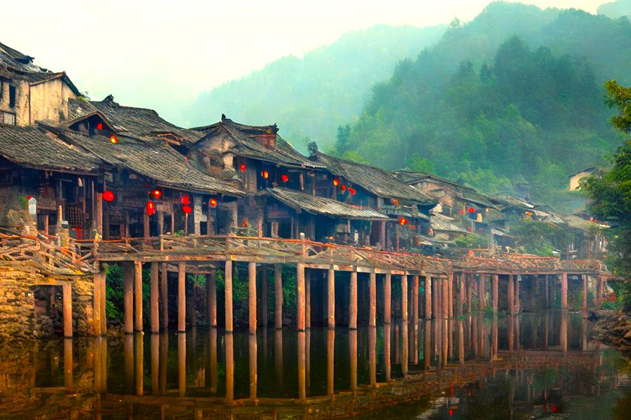柳江被称作“烟雨柳江”,白天感觉不到这点。到了晚上,小雨淅沥,坐在望江客栈的二楼上,在朦胧的灯火中,听雨望江,才仿佛找到了“烟雨柳江”画意。