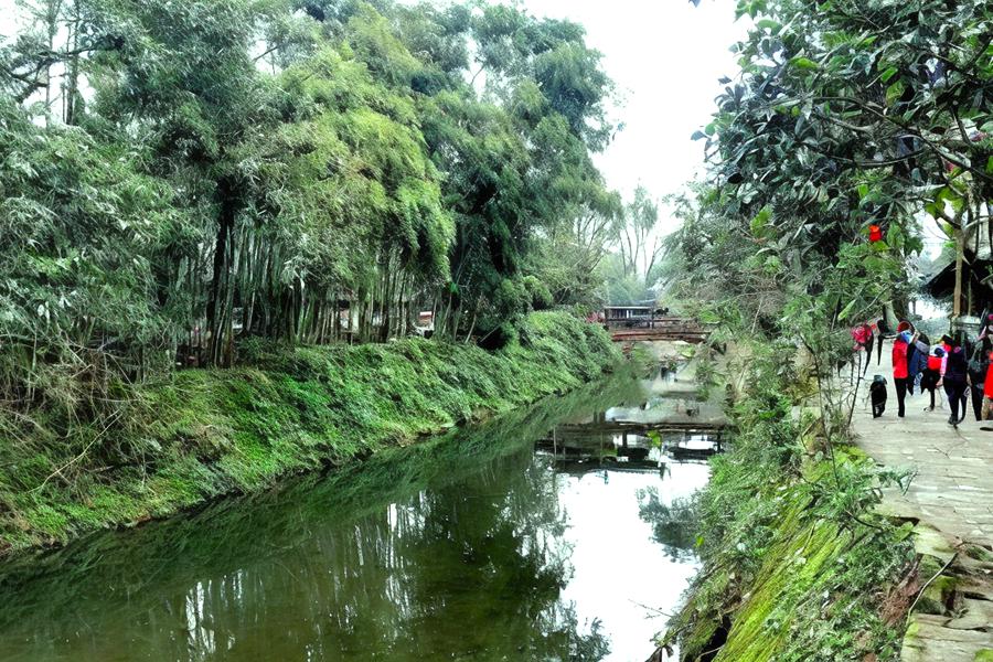 柳江古镇的特色景观包括川西风情吊脚楼、中西合璧曾家园、访古寻悠水码头、亲水临河古栈道、百年民居汇老街,还有圣母山碑林、世界第一大睡观音、108棵千年古树等。古镇从来多古树。柳江古镇不仅生长着许多巨大的黄葛、麻柳古树,还有一株据说已有200年树龄的黄桷兰。那株高龄黄桷兰高达数十米,枝繁叶茂,且花香袭人。让人称奇的远不止此,与这株黄桷兰一墙之隔的曾家大院中有一株奇树,树上挂满了像豇豆般细细长长的果实。当地没人知道它的名字,也没人知道它的来历,我们只好称它为“豇豆树”。