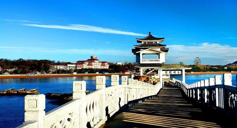 在城东15公里的海中,山势秀美,古树参天。南有伥山岛和阎山岛,北有磨盘山,一大三小相映成趣。辽代为佛教圣地,迄今犹存龙宫寺、海云寺等遗址。还有唐卫洞和明大悲阁、囤粮城及码头等古迹,还有九顶石、石林等自然景观。