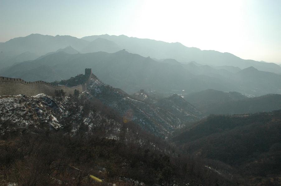 长城入海的端头部分,俗称“老龙头”。如果把万里长城比作一条巨龙,那么长城入海的部分,就宛如这条巨龙在引颈戏水,“老龙头”正是这条巨龙之首。伸入渤海的这段长城,筑于渤海之滨,伏在燕山支脉松岭高地之上,长674米,墙体沿海岸线自然弯曲延伸。“老龙头”素来享有“中华之魂”的盛誉,它英姿勃发,每日迎风击浪,形成了海滨长城的独特风貌,称为万里长城中的一绝。