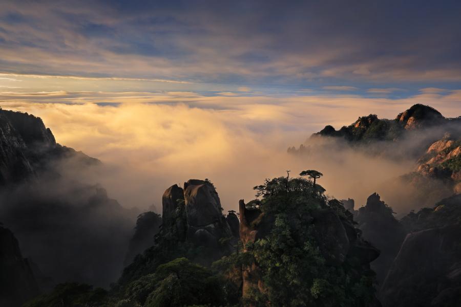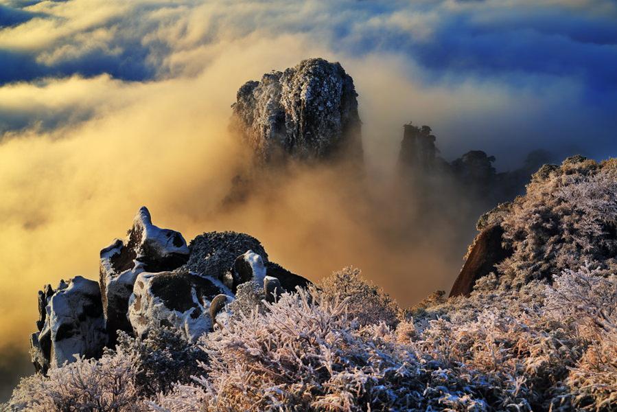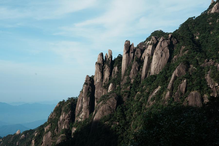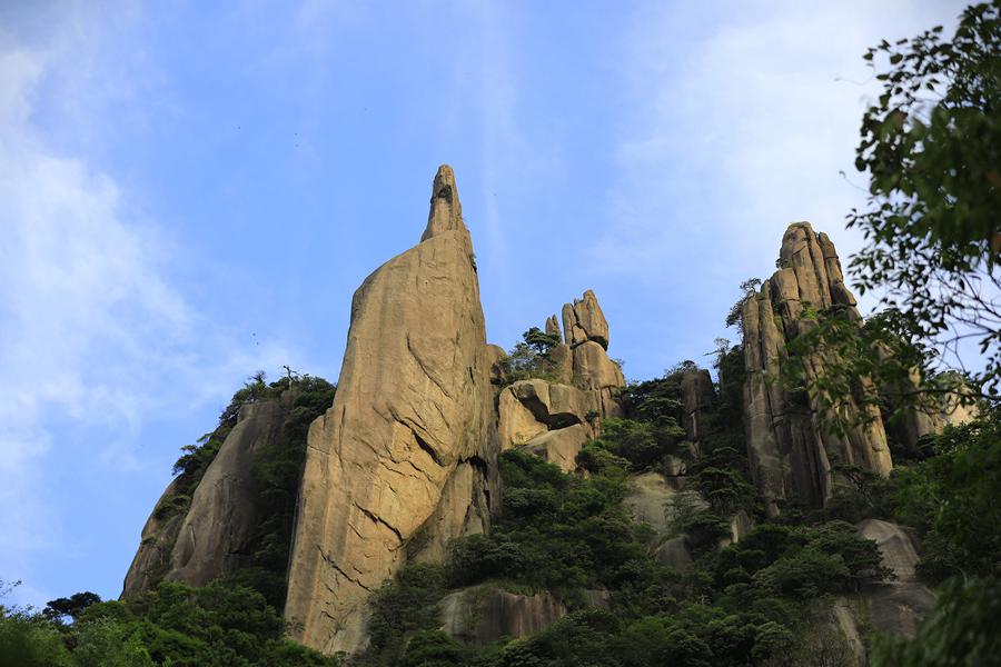 有“小黄山”之称的三清山有着许多造型奇特,巨蟒出山、猴王献宝、老道拜月等,标志性的奇景。栈道是三清山另一特色,两大景区形成一条海拔1600米的高空环型旅游线路,是观赏三清山东部瑰丽风光的最佳之处。