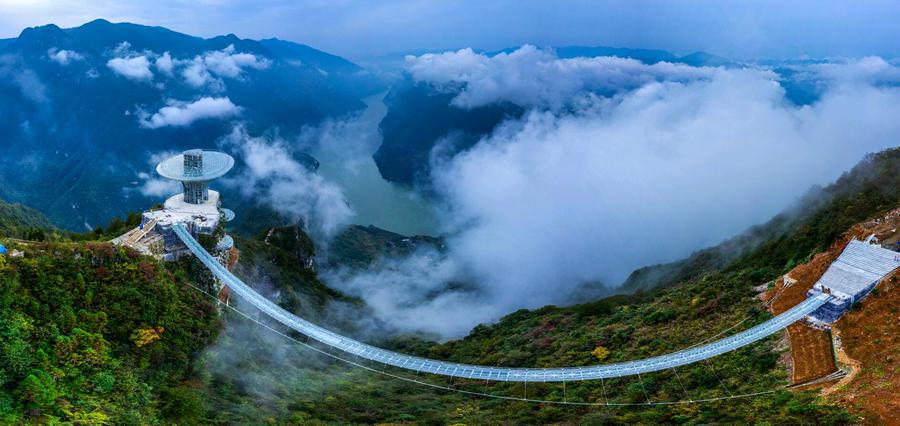 “俯瞰巫峡”的全新视角,耸立于绝壁高崖的“灵芝仙台”观景平台,宛若仙葩在40余米高的石崖之上惊艳绽放。长江在这里90°大拐弯,这里群峦叠嶂、峡谷幽深,是观巫峡云海、摄峡江落日的最佳观景点,是俯视长江第一拐,鸟瞰巴东新城全景的制高点。