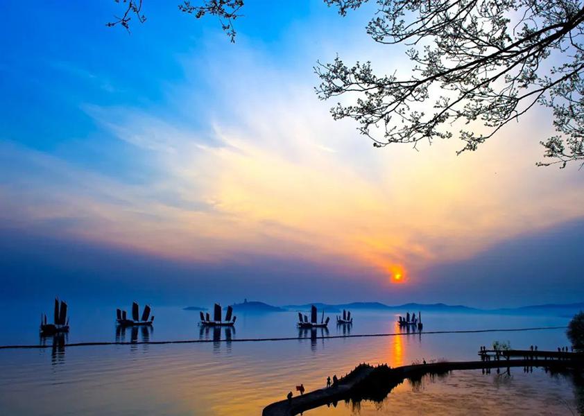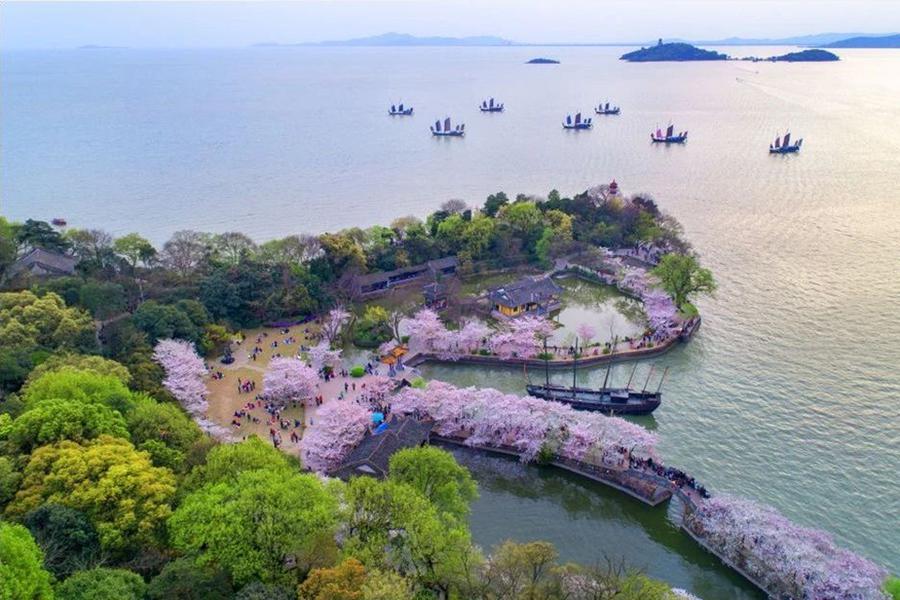 鼋头渚是太湖北部的一处由多个小岛组成,形似浮鼋翘首而得名。春季樱花齐放是这里的一大奇观,更有热闹的樱花节。既有山长水阔、又有小桥流水的山乡田园风光,登半岛上的鹿顶山可环顾湖滨翠色,感受到太湖的浩淼之美。