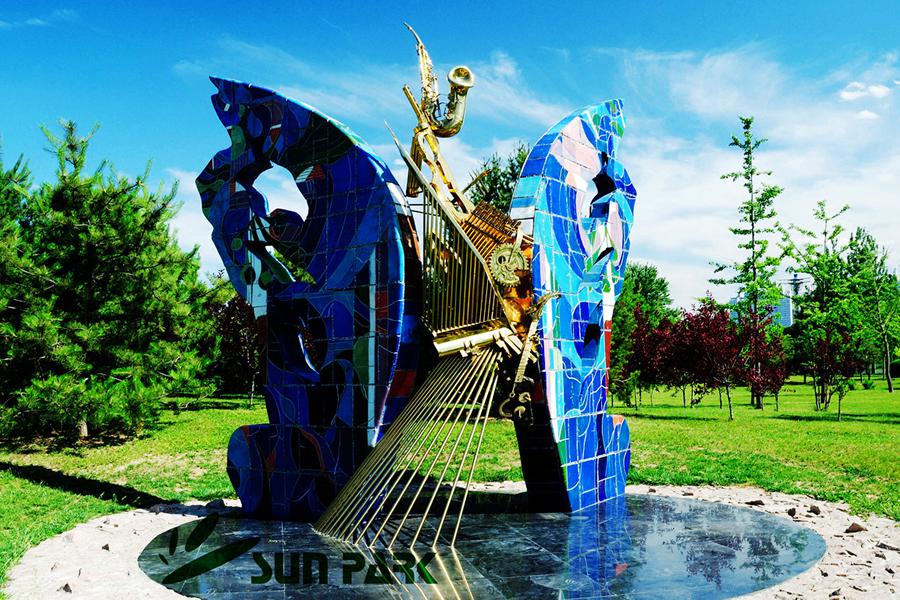 公园南大门为5根红色立柱架托出两道浮云,最高的1根立柱高24米,全开放式设计,给人以宽阔、开朗、大方和美的享受,其气派与风格在北京市园林门区景观中独树一帜。
