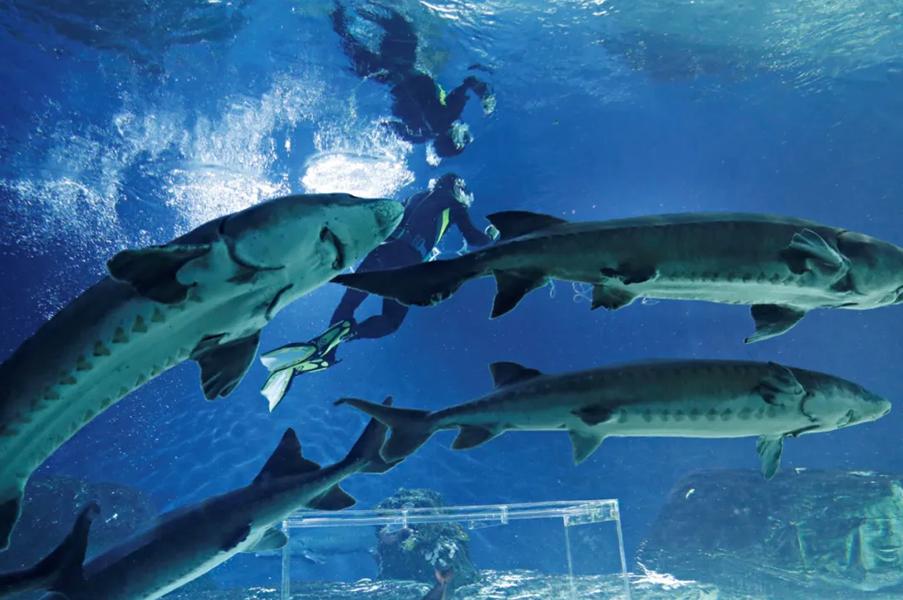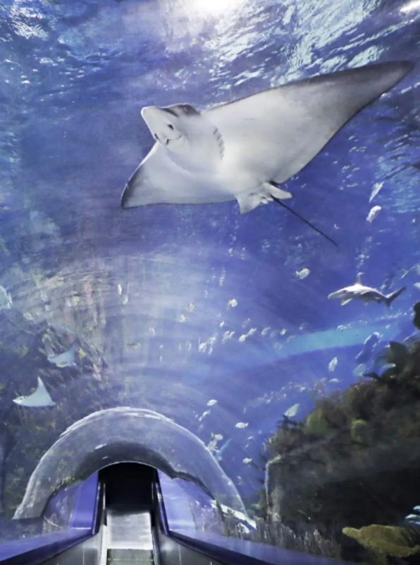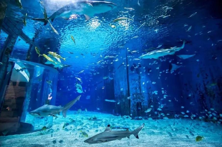 海洋馆是一座巨大的海螺型建筑,共有两层,分为雨林奇观、 鲨鱼小镇、海底环游、白令海峡、 国宝中华鲟馆、 鲸豚湾、海洋剧院七大区域。进入海洋馆后沿着指示路线按顺序一一游览即可,游玩整馆大约需要3小时。
