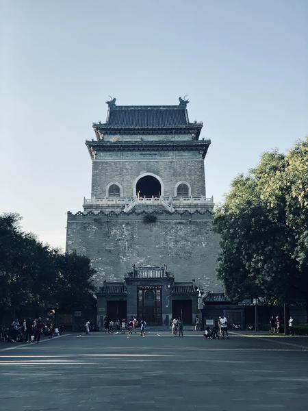 钟楼在鼓楼以北约100多米处,原是元代万宁寺的中心阁,始建于至元九年(1272年),后来毁于战火。明永乐十八年(1420年)与鼓楼一起重建,成为钟楼,但不久后就再次被毁。清乾隆十年(1745年)奉旨重建,两年后竣工。这次为了防止火灾,建筑全部采用了砖石结构。