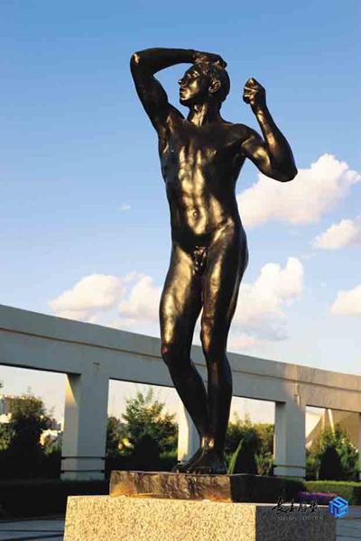 从主入口进入首先来到罗丹广场,这里展示着世界雕塑大师罗丹创作的三尊名作《思想者》、《青铜时代》、《巴尔扎克》。其中这尊《思想者》是由法国罗丹博物馆的原模翻制,世界上仅有几十件原模浇铸的作品,长春这件是一件原件作品,相当珍贵。园内还有很多著名的雕塑,如《飞翔》《观察家》《尼罗河》《春之爱》《海花》《盘古》等