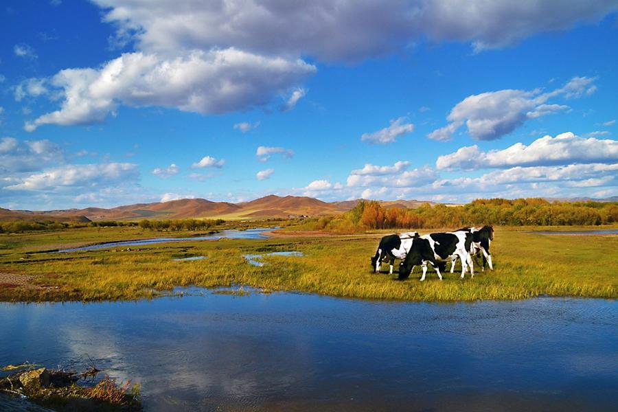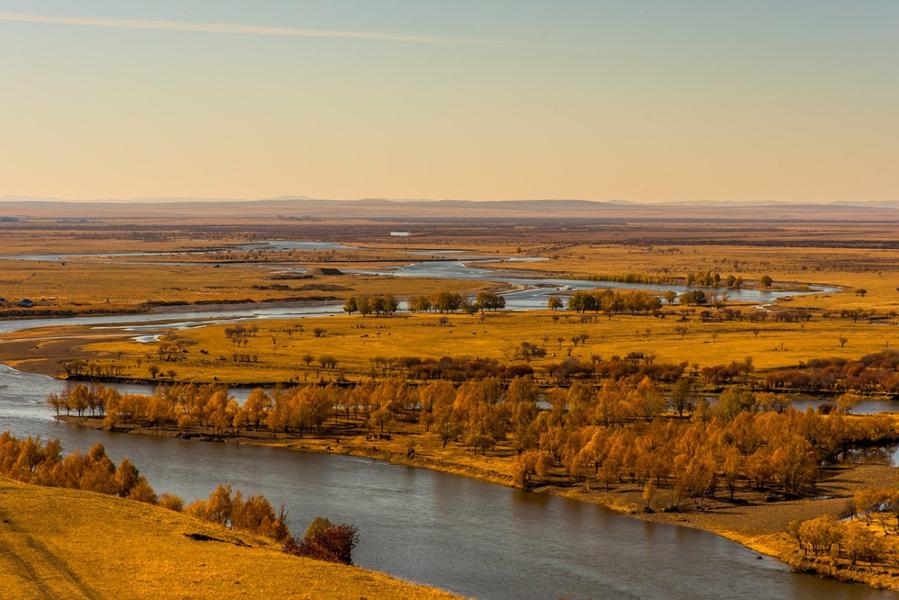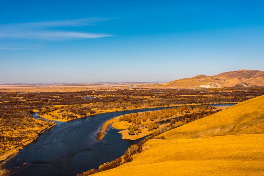 呼伦贝尔的陈巴尔草原上的莫尔格勒河被当地人称为第一曲水,此地是以游牧部落为景观的旅游景点。这里是呼伦贝尔的天然牧场,每到水草丰美的季节,这里就会聚集很多游牧的牧民,形成一个自然的游牧部落。