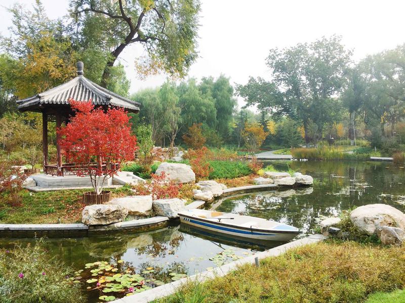 樱花园是园中园,也是北京最大的樱花园。园内种植了从日本引进的几千株樱花树。这些樱花品种不同,花期也有早有晚,可以接替开放,使得樱花园每年的3、4月份有一个多月的时间都能看到盛大的樱花。