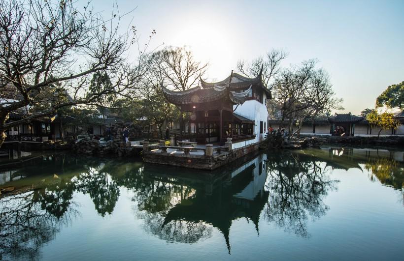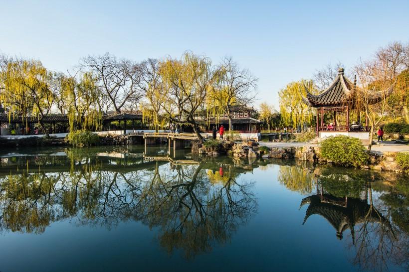 拙政园是位于中国江苏省苏州市的一座古代园林,被誉为中国四大名园之一。拙政园始建于明正德四年(1508),由御史王献臣以大弘寺废址拓建而成,后经明代著名画家文徵明设计,形成现在的规模。拙政园占地约52000平方米,整个园林以水池为中心,环绕着水池安排了各种景点,相互呼应疏密得当。园中建筑精美,布局自然,以清幽、淡雅、秀丽、自然的特点闻名于世。