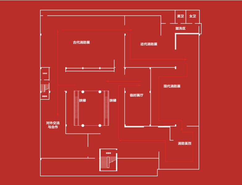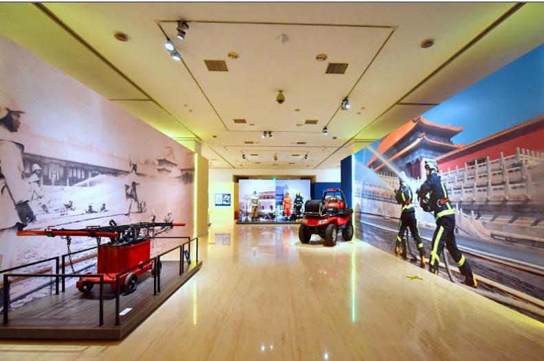 中国消防博物馆由序厅、防火防灾体验厅、“文化· 传承”展厅、“烈火·荣光”展厅、国家综合性消防救援队伍的组建展厅、国际交流与合作展厅及临时展厅等组成。