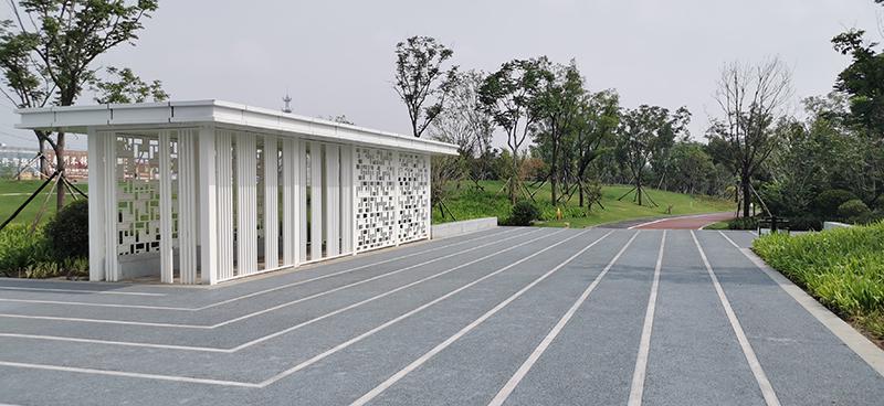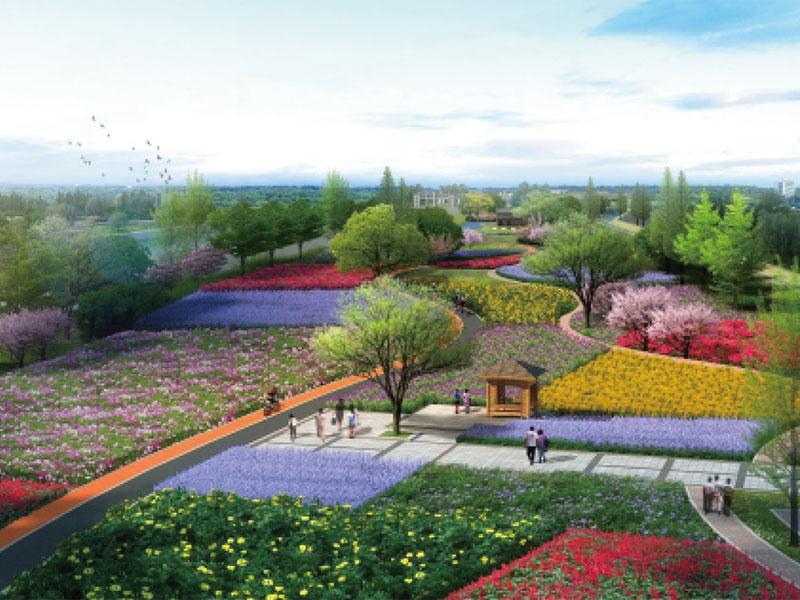 公园内种植了许多四季常绿的树木,如桂花、石楠、白皮松、油松、雪松等。同时,公园内还有许多造型树,如像盆景一样的榔榆、对节白蜡、小叶女贞、油松等,它们分布在每个节点公园的关键位置,起到画龙点睛的作用。