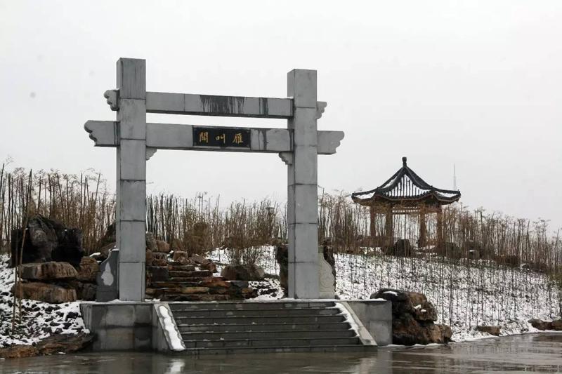 唐玄宗开元21年8月16日清晨,龙盖寺智积禅师漫步山门外的湖堤,在现名“水港口”的地方见大雁以翼覆一婴儿,“收畜之”。后人便称在“雁翼覆羽处”的小桥为“雁桥”。在初闻雁叫处立牌坊,中作“雁叫关”。后在兴建陆羽故园时,将毁废已久的雁叫关牌坊,复建于今西塔寺山门外右近的西湖北岸。