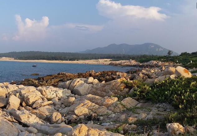 这里海岸奇峰林立,怪石嶙峋,有许多引人入胜的天然景点,如峻壁角、细眉角、鉴真坐禅、黄帝祭海、神龟探海、大角石林、小角石林、仙人足迹、八戒背媳妇、祭海石、观鱼石、火焰石、情侣石、帆船石、观音石、观音潭、棋子篮、望郎滩、白沙岭、治癣沟、天然盘景园及野菠萝度假村等。