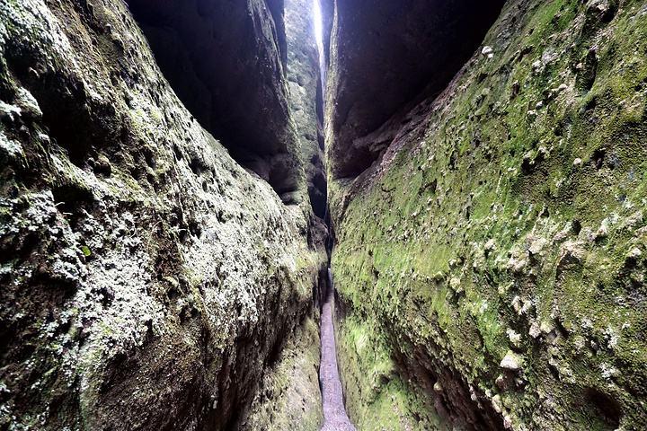 “天下第一巷”,全长238.8米,两侧石壁高80—120余米,最宽处0.8米,最窄处0.33米可谓世界一线天绝景。两旁绝壁对峙,笔直如刀劈斧削,抬头唯见一线青天;至身谷中,恍若时间隧道里的过客,体验着险与美的魅力。另外还有纵横交错的马蹄巷、遇仙巷、翠竹巷等,巷窄境幽,两旁翠竹依依,令人留连忘返;循揽月梯拾级而上,顿生可上九天揽月之感;来到七层楼藏天洞,站在望江楼、楼外楼,无尽美景奔入眼底,使人由衷赞叹“江山如此多娇”。