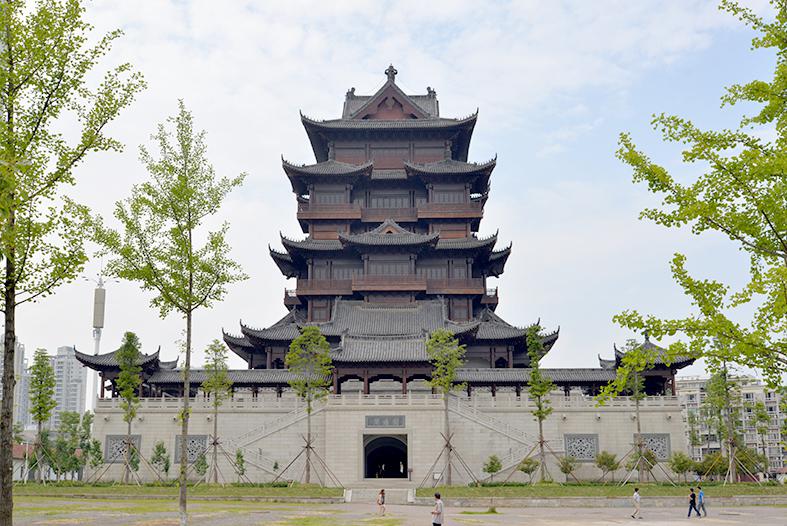是收藏佛教经典和艺术珍品的地方。现存的藏经阁高约20米,共两层五间,是武汉市内唯一的砖木结构古建筑物,复建于1920年。藏经阁内殿堂高阔,正中供奉白玉释迦牟尼佛坐像。