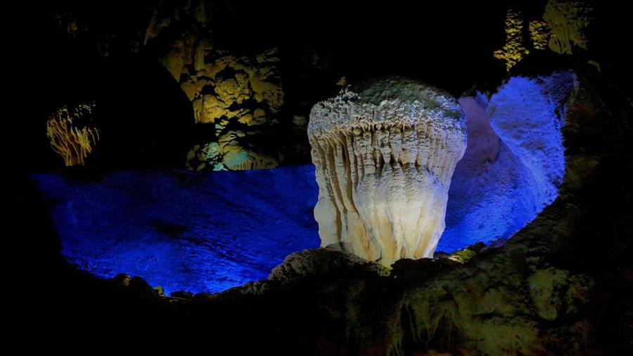 “美”:在“大奇全”的基础上,洞内流光溢彩,不是天宫,胜似天宫,从而到达了天下第一洞无与伦比的溶洞美学境界。