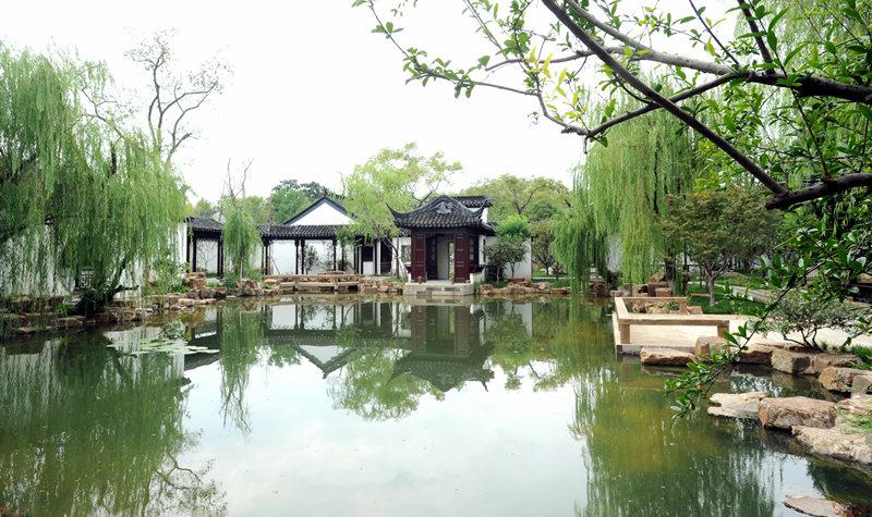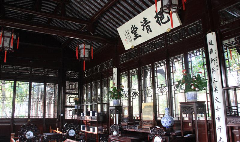 可园 又名“近山林、乐园”,与沧浪亭仅一巷之隔,园门朝南,与沧浪亭隔水相望。可园现存面积5000平方米,园林以水池居中,建筑疏朗,槛曲廊回,水木明瑟,庭宇清旷。