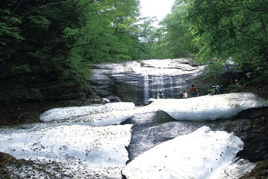 大冰沟森林公园拥有罕见的夏季冰瀑奇观,避暑胜地。有世界濒危花木天女木兰花群,少见成片的红松林,红枫叶金秋时节,万株红枫争艳,漫山红遍。林荫蔽日清凉宜人,漫步观泉栈道三千米蜿蜒在树林之间。高空玻璃漂流。