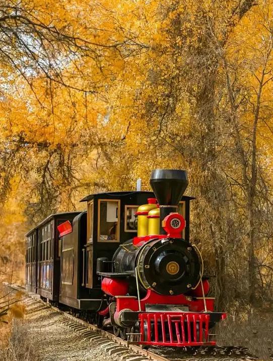 由一条13公里长的环形游览小铁路和4-5个较大的林中湖泊构成。湖边生长着非常茂盛的胡杨,乘坐观光小火车,一跃绿草地、二窜红柳丛、三过芦苇荡、四跨恰阳河、五绕林中湖,尽情领略大漠江南的秀色。