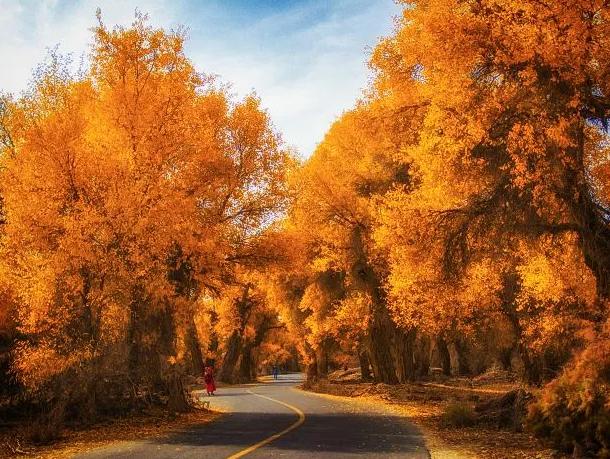 由一条长约17公里、拥有126个弯道的景区道路贯穿,沿途可欣赏到不同季节、不同形态的最古老的、最原始的胡杨神采雄姿。