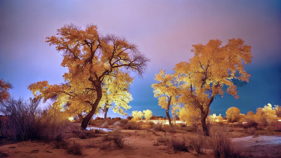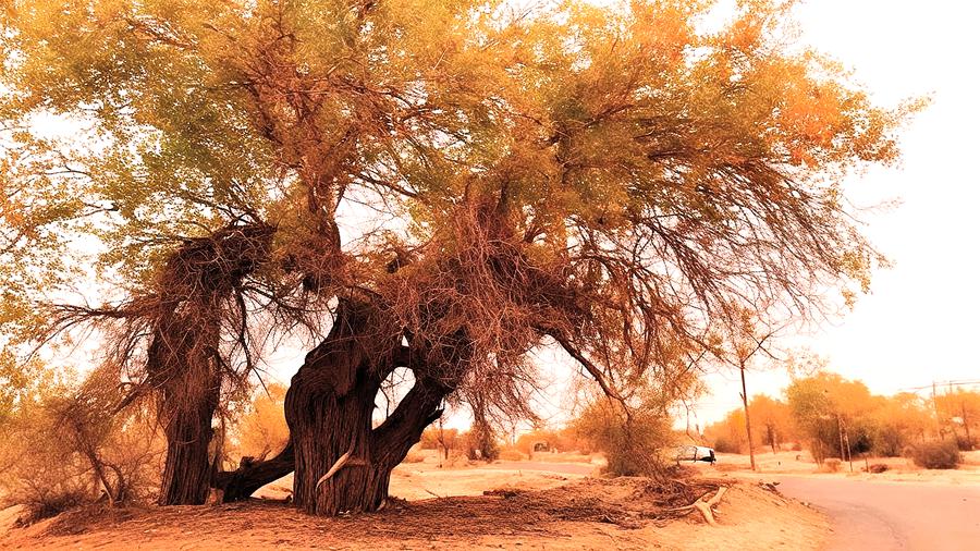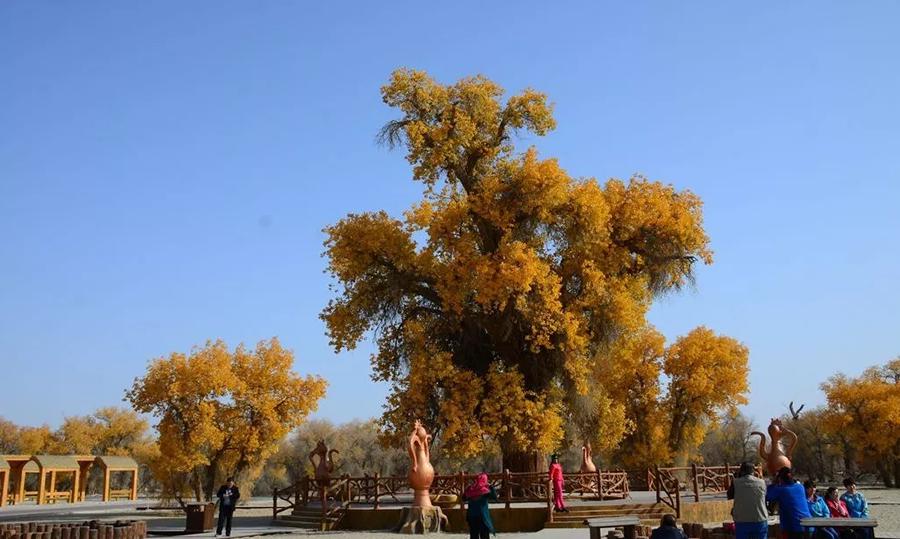 世界上面积最大、分布最密、存活最好的胡杨林,长达17公里、126个弯道的景区道路贯穿的古老胡杨林区。春天胡杨微吐绿芽,盛夏胡杨身披绿荫,落英缤纷,特别是在秋季,整个胡杨林变得一片金黄,倒影在水中非常美。