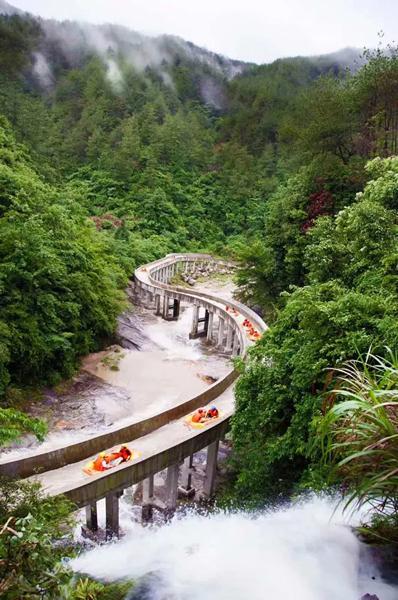 黄石河漂流,由森林河道、游乐水面、玻璃隧道及高空滑槽等组成。漂流时长约2小时左右,河道全长6800米,由森林河道5500米,游乐水面500米,玻璃隧道300米,高空滑槽500米组成。整个漂流全长落差189米,落差38米,漂流过程中转换极快。沿途可欣赏到峡谷、树木、险滩等各类自然景观,两岸环境优美,风光宜人,白鹭成群,水质清澈见底,蓝绿相间,高山、深谷、滩流交织其间。